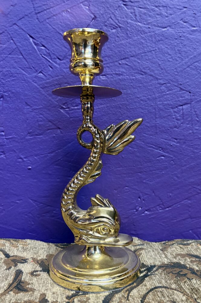 Brass fish candlestick holder.