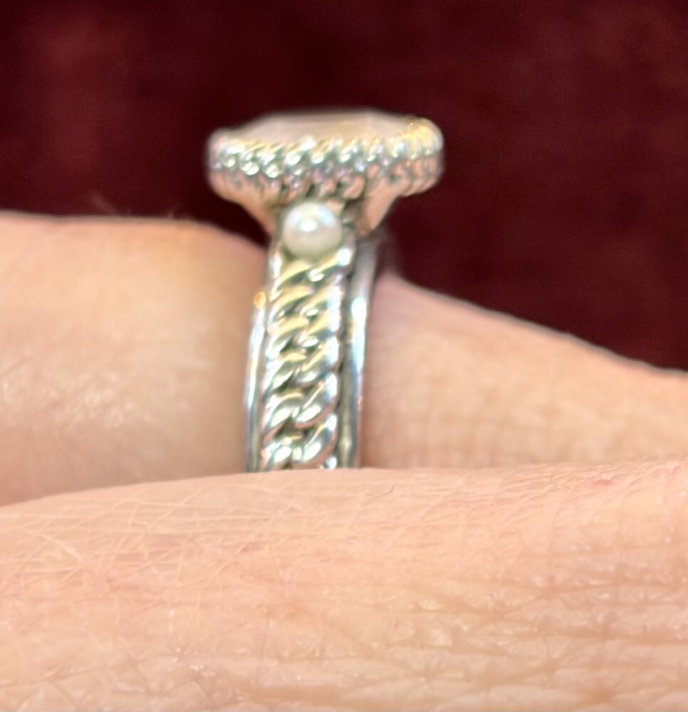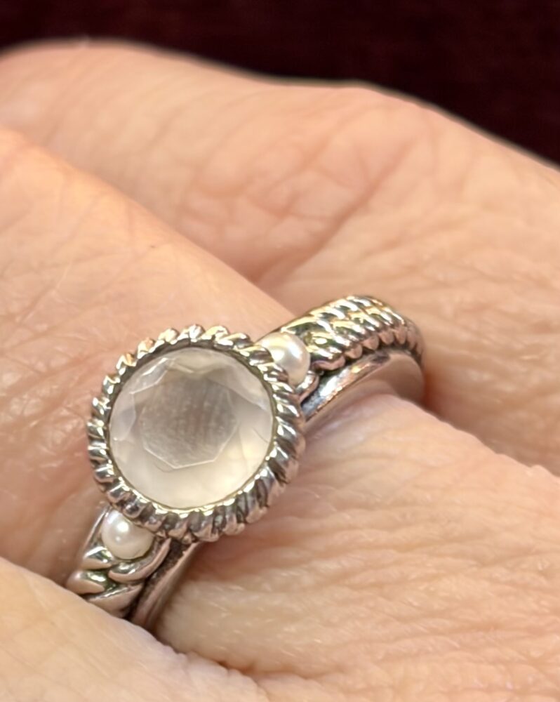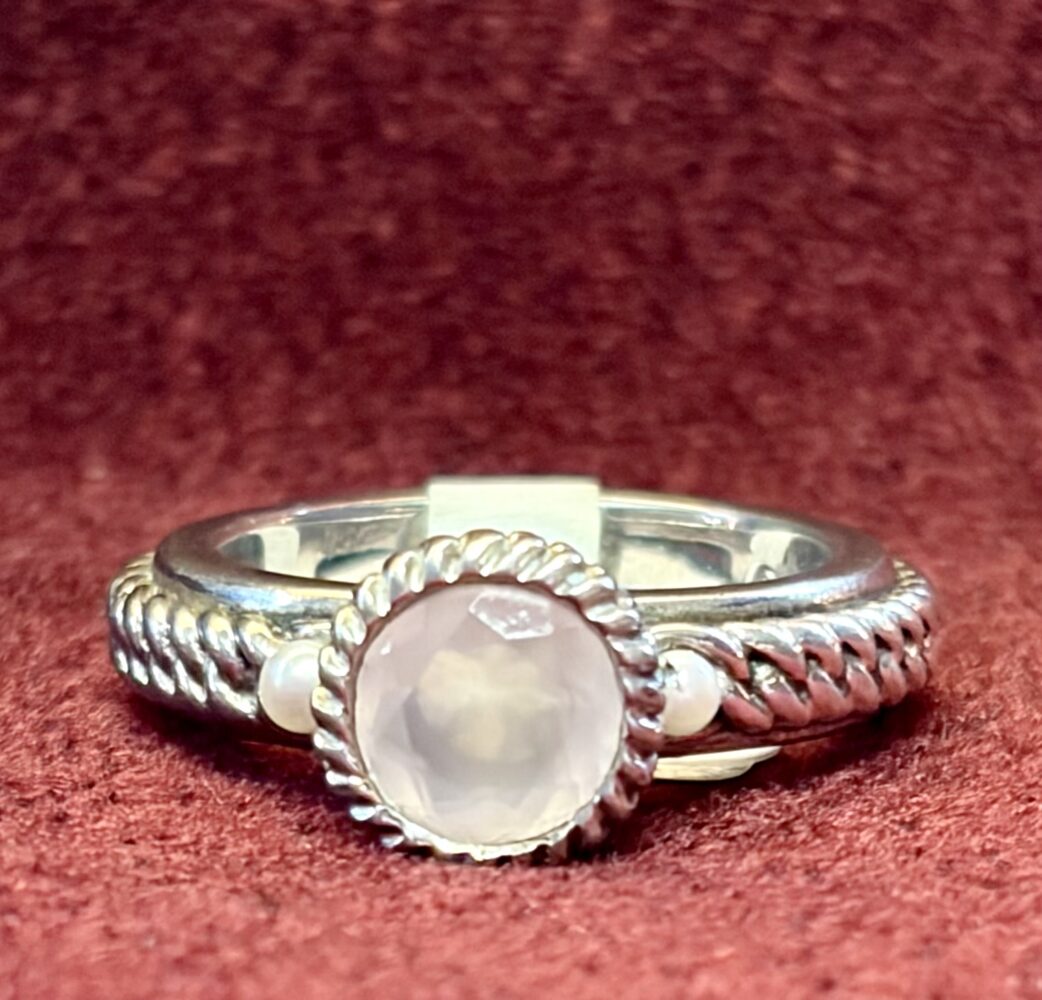 Vintage rose quartz and sterling silver cocktail ring. Size 7