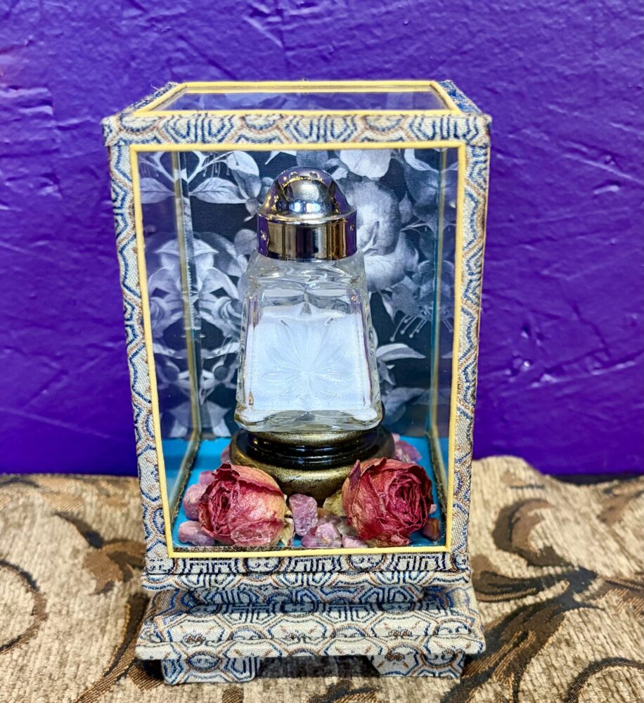 Embrace your inner salty bitch with this vintage salt shaker (prefilled with salt of course), resting upon and agate, surrounded by dried roses and quartz crystals.