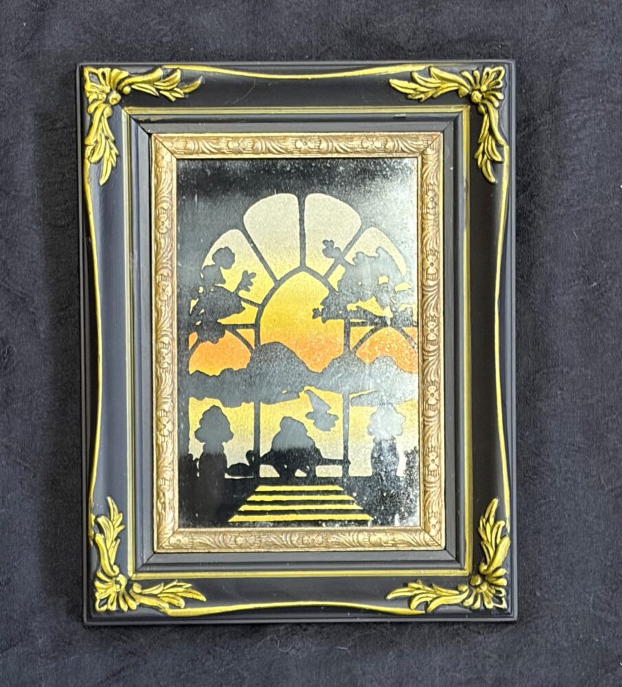 Vintage reverse painting silhouette “window scene”, in upcycled vintage frame.