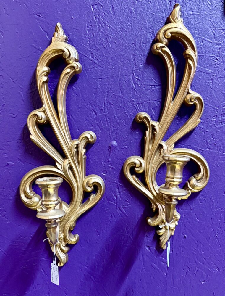 I’m Upcycled vintage Syroco Inc ornate, wall mounted candle holders (Pair).